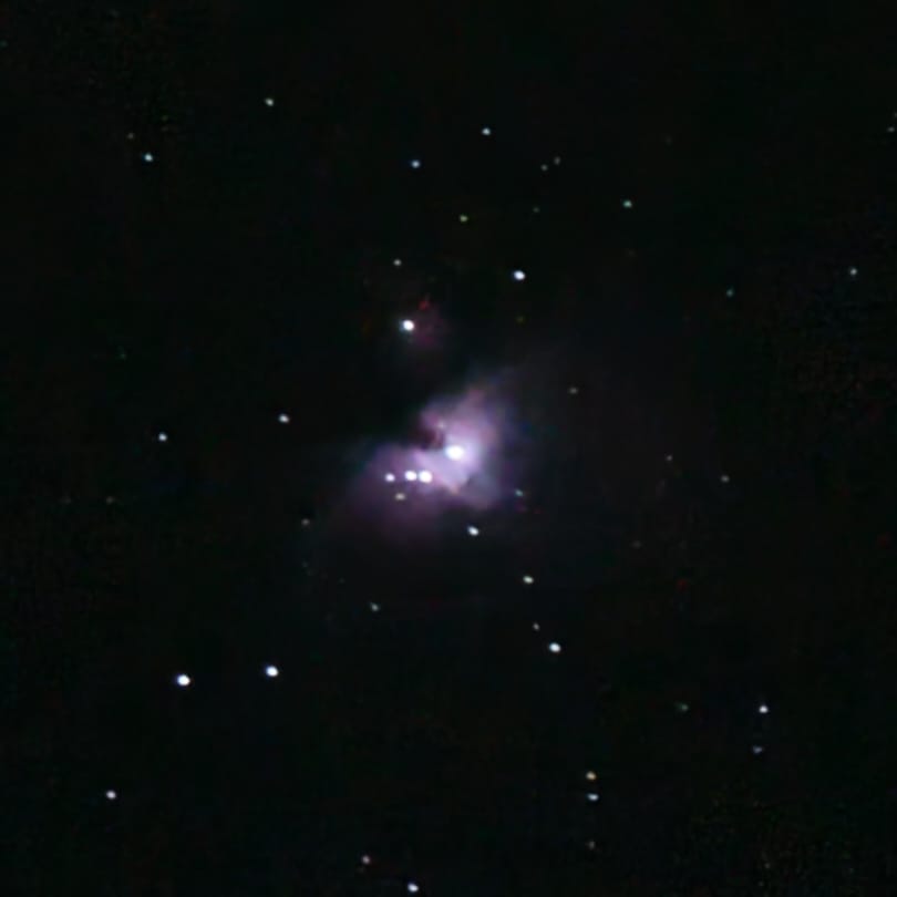 The moon wasn't the only thing I could see from my balcony though. One crystal clear night I didn't want to go to sleep yet and saw the sky sparkle with stars. I stepped out with my camera, telescope lens and tripod to investigate some more. The Orion nebula was one of the things I found. Way less bright than the moon, even after 1 s exposure. So I thought: maybe a longer?